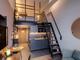 Двухуровневая квартира представляет собой мастер-студию на двух уровнях. На верхнем уровне находится спальня с полками. Нижний этаж предлагает достаточно места для проживания с красивой гостиной зоной, диваном и полностью оборудованной мини-кухней.